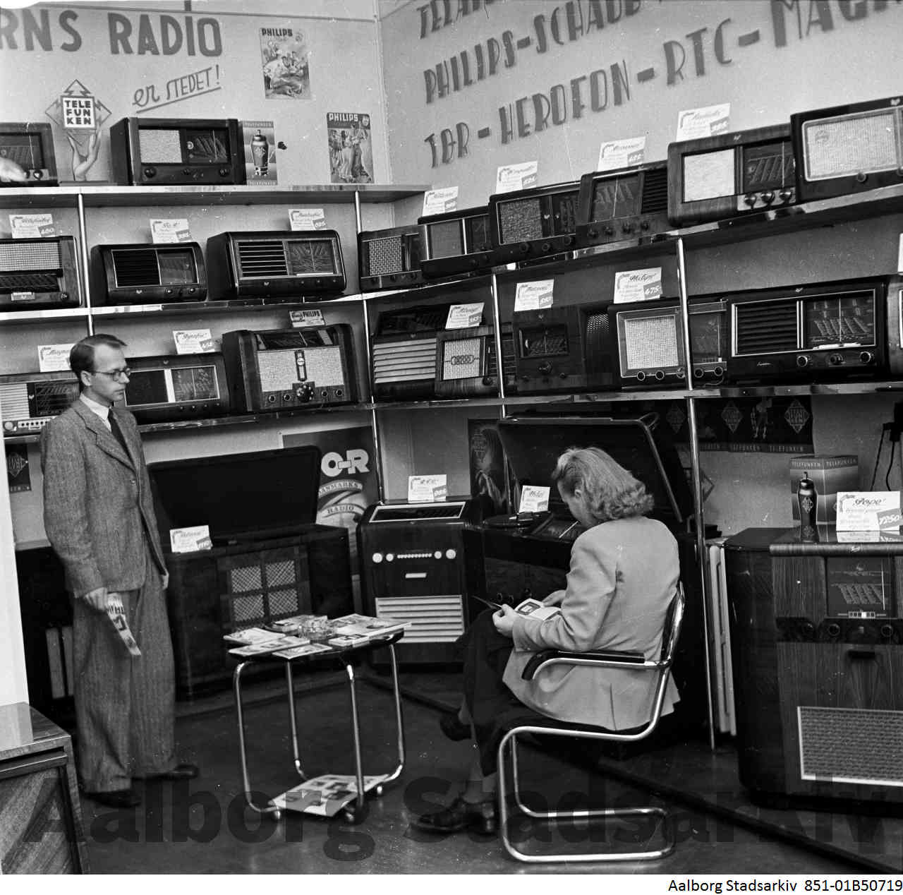 Foto af butikken 1977 https://media2.aalborgstadsarkiv.dk/media/Billeder_AAS_DIP/851-01B59593.JPG