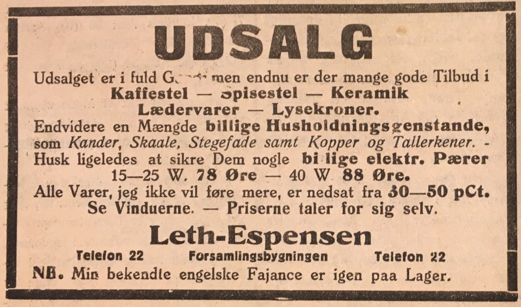 S. Bertelsen, Adelgade 121, Skanderborg, foto : ukendt, 1921