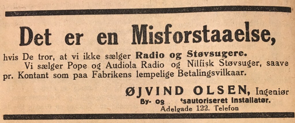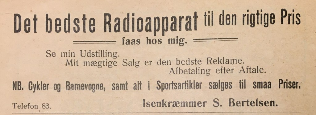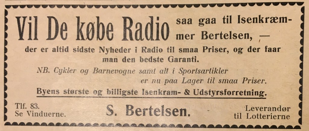 Søren Bertelsen Radio, Adelgade 121, Skanderborg, foto : Jens Jensen, 1920’erne
