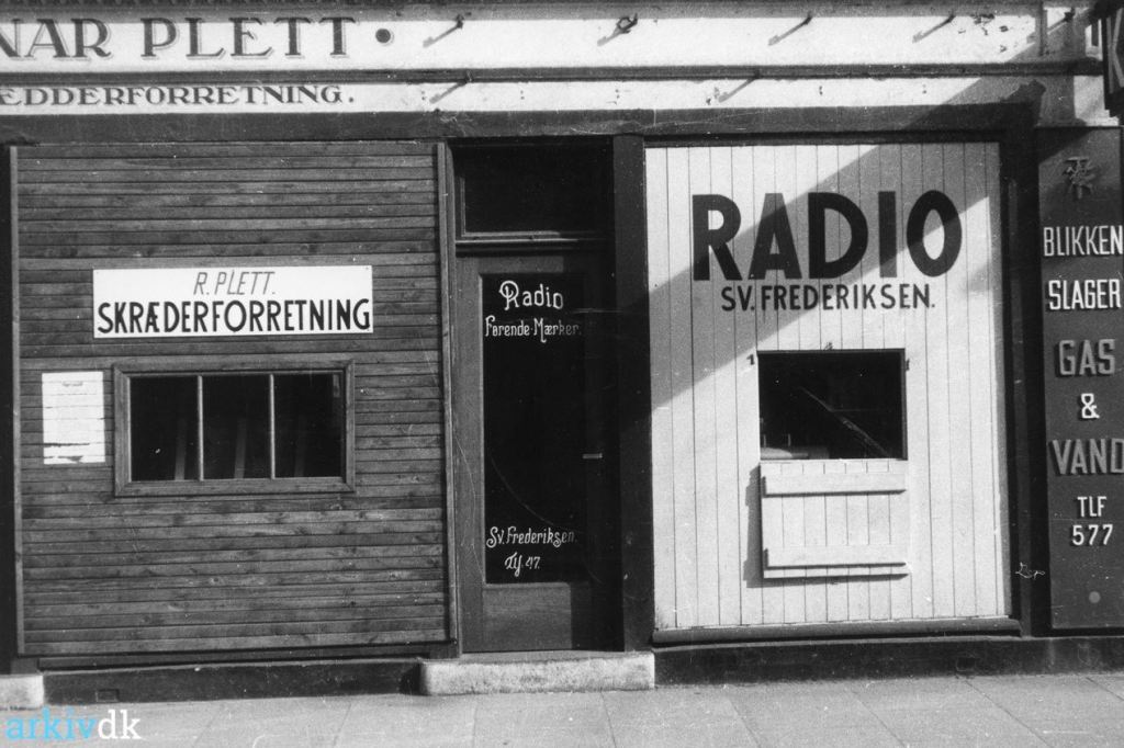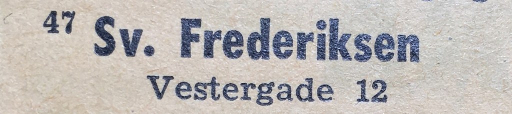 foto : Skatte- og Adressebog for Balle Kommune 1932-1933Svend Frederiksens vinduer dækket med brædder i Vestergade 12, ukendt, 1940-1945JTAS Haandbog 1951Vestergade 12, foto : Johs. Jensen, 1957Kongeriget Danmarks handels kalender 1961-1962foto : Silkeborg vejviser 1964Pladecover for 78″ lakplade, foto : Jan Mikkelsen