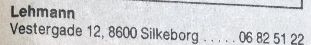 foto : Telefonnøglen for Silkeborg 1934foto : Skatte- og Adressebog for Balle Kommune 1936-37Pladecover for 78″ lakplade, foto : Jan Mikkelsenfoto : JTAS Telefon Haandbog 1938Sv. Frederiksen, Silkeborg, reklamemærke, 1940’erne, ukendt fotograf, arkiv.dkfoto . Lokal-Haandbog for Silkeborg og opland 1944foto . Telefon-Nøglen for Silkeborg og Opland 1949