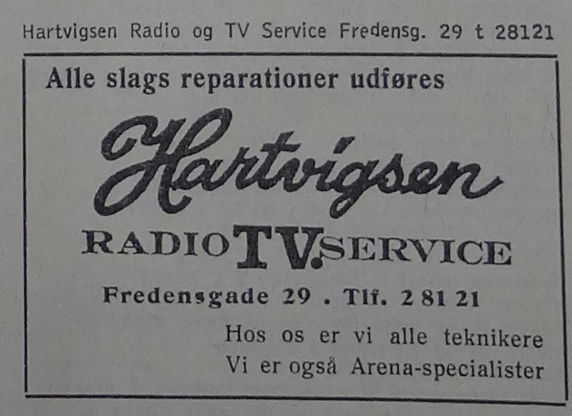 Hartvigsen Radio TV. Service, Fredensgade 29 1961-2000