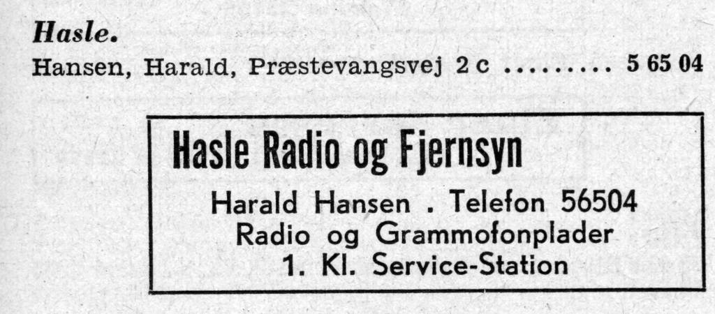 Hasle Radio og Fjernsyn / Hasle Installationsforretning, v/ H. Harald Hansen, Præstehaven, Præstevangsvej 2 C
