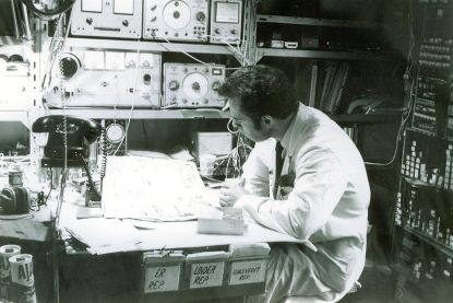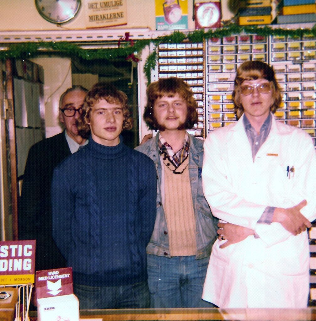 Værkfører Arne på værkstedet, sammen med Ole og en lærling, ca. 1972