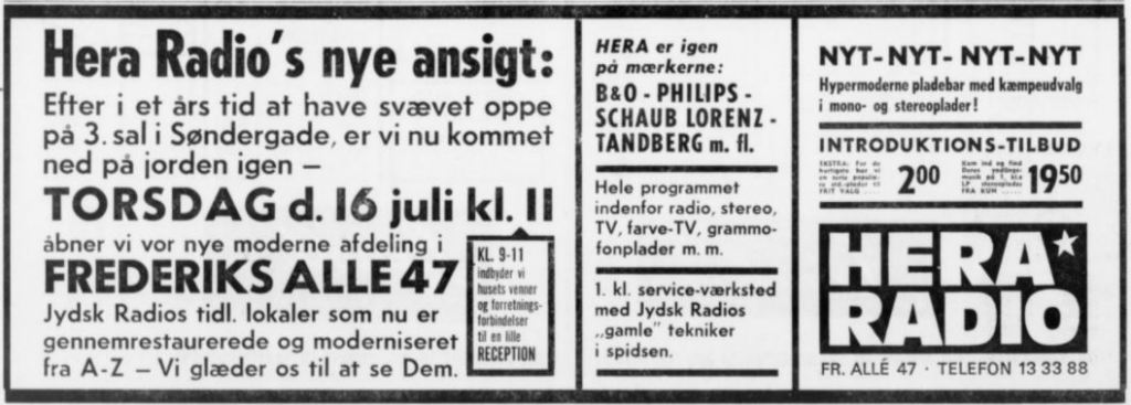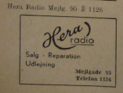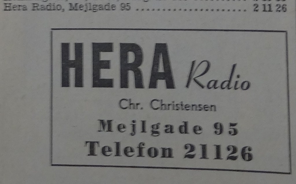 Hera Radio, Østergade 3, Søndergade 32, Frederiks Allé 47, Mejlgade 95 & Banegårdsgade 34 1940’erne-1970’erne