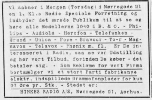 Hejndorf Radio, Bruunsbro, M.P. Bruuns Gade 15 1940’erne-1960’erne