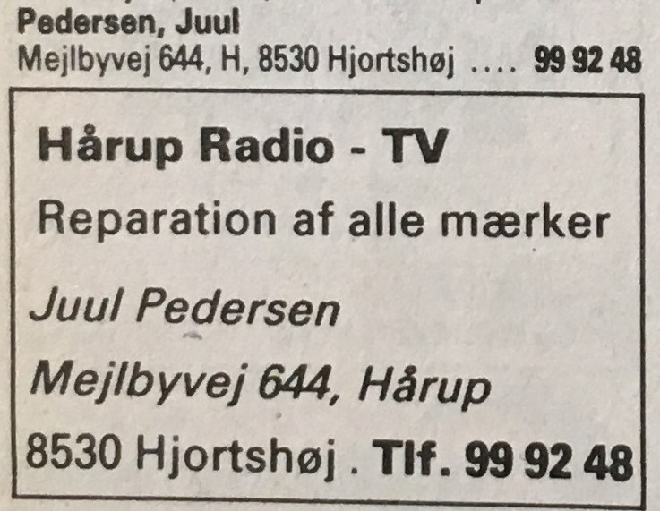 Hårup Radio – TV, v/ Juul Pedersen, Mejlbyvej 644, Hårup