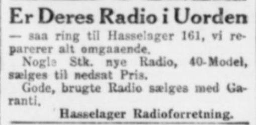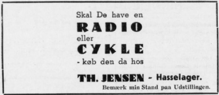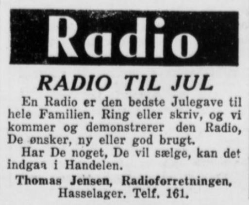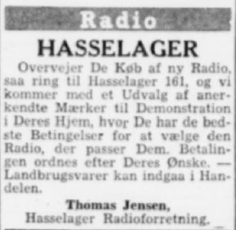 Hasselager Radio- og Cykleforretning, v/ Thomas Jensen, (Senere Park Radio, se denne) Hovedvejen 6, Hasselager