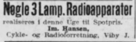 Im. Hansen Cykle- og Radioforretning, Kongevej 30, Viby (nuværende Skanderborgvej 183)
