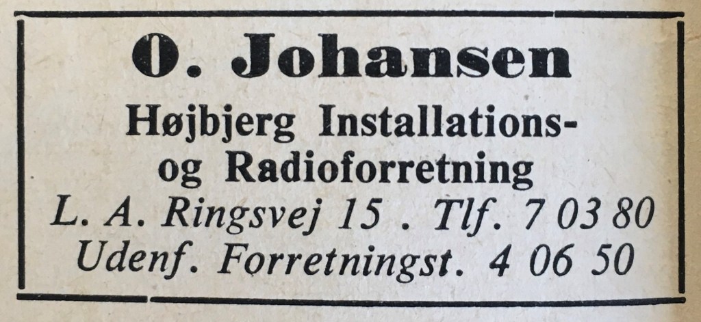 Højbjerg Installations- og Radioforretning, v/ Otto Johansen, Elverdalsvej 19, Kridthøjvej 7 & L. A. Ringsvej 15