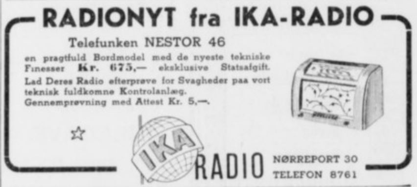 IKA Radio, Nørreport 30 (på hjørnet af Knudrisgade) 1945-1964