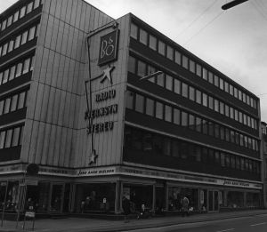 Viby Radio ved gavlreklamen for LL Radio, foto : Børge Venge 1954