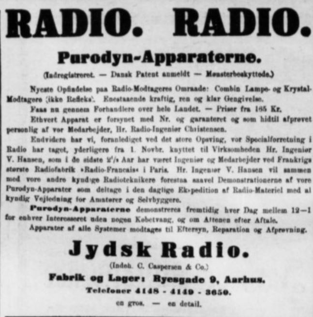 Jydsk Radio i Grand Hotels bygning, Ryesgade 9, foto : ukendt, 1920’erne