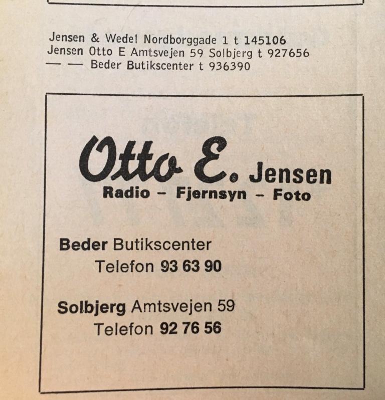 Otto E. Jensen, Radio – Fjernsyn – Foto, Beder Butikscenter & Amtsvejen 59, Solbjerg 1960’erne-1990’erne
