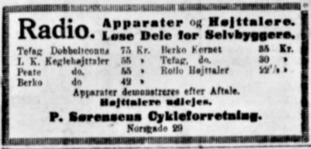 Nordisk Cykle Imports Radio Afd., Frederiksgade 42 & 45 1920’erne-1930’erne