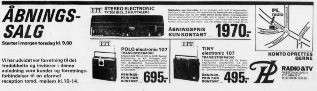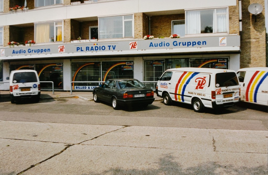 PL-Radio & TV facade – ca. 1978PL Radio & TV, Audio Gruppen, facade og firmabiler – 1990PL Radio & TV, Audio Gruppen, facade og firmabiler – 1990