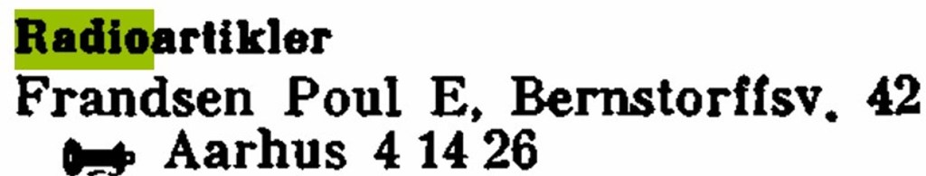 Park Radio, (tidl. Hasselager Radio- og Cykleforretning, se denne) v/ Thomas Jensen & Borgbjerg Jensen, Hovedvejen 49-51, Hasselager 1960’erne-1990’erne