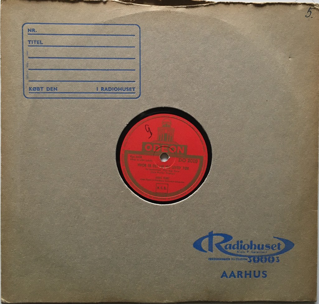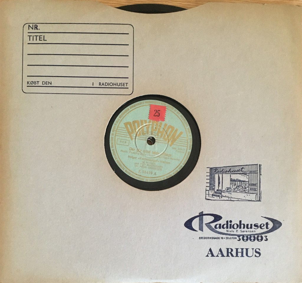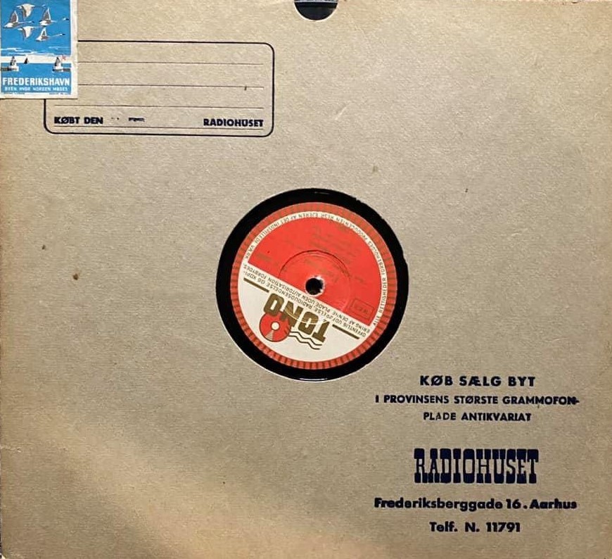 Pladecover for 78″ lakplade, foto : Jan Jannesen, venligst udlånt af Erland WittusFrederiksgade 15, foto : ukendt, 1960’erneMåske er mærkaten sat ovenpå en fejltrykt adresse på pladecover for 78″ lakplade, foto : Jan Jannesen