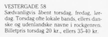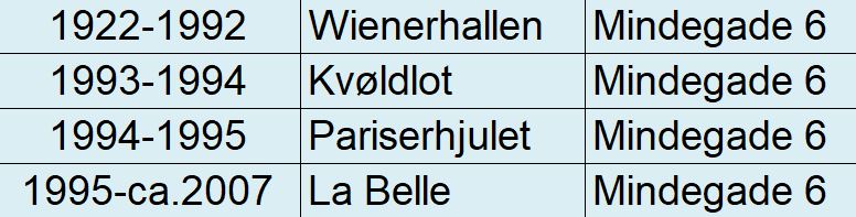 Diverse diskoteker & spillesteder på samme adresse gennem årene, researchede af Jan Jannesen