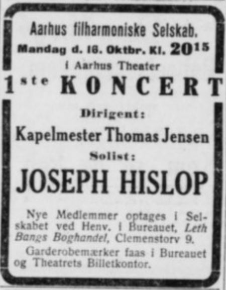 Aarhus Teater, oktober 1919, kilde : “Århus i avisannoncer 1900-1960”