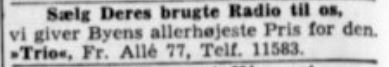 foto : annonce i Radiofagbladet ca. 1922