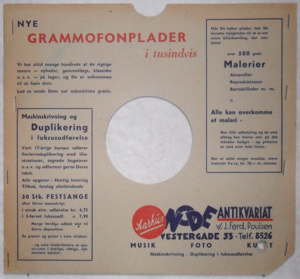 Pladecover for 78″ lakplade, foto : Jan Jannesen (Havemann’s afd. i København)