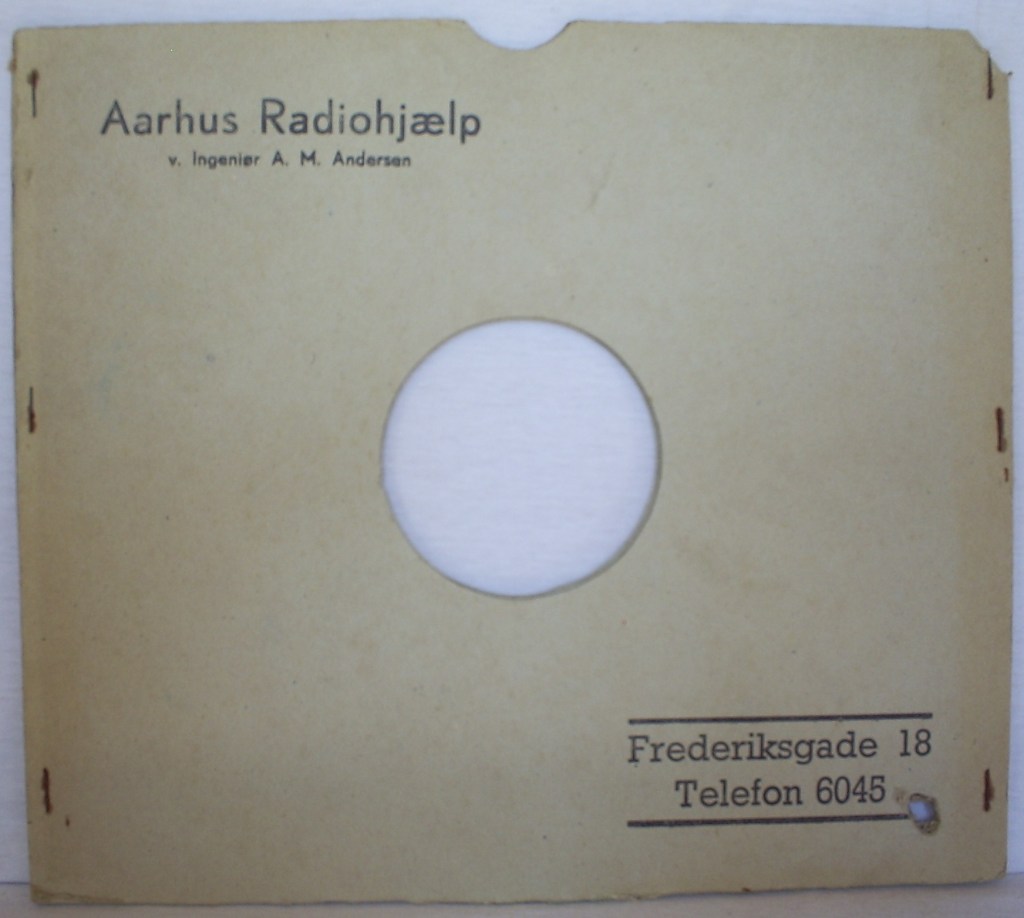 Mærkat på et 78″ lakplade cover, Vestergade 33, Århus, foto Jan Mikkelsen