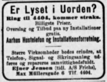Aarhus Hustelefon- og Installations Forretning Max Müllers Gade 6 1926-